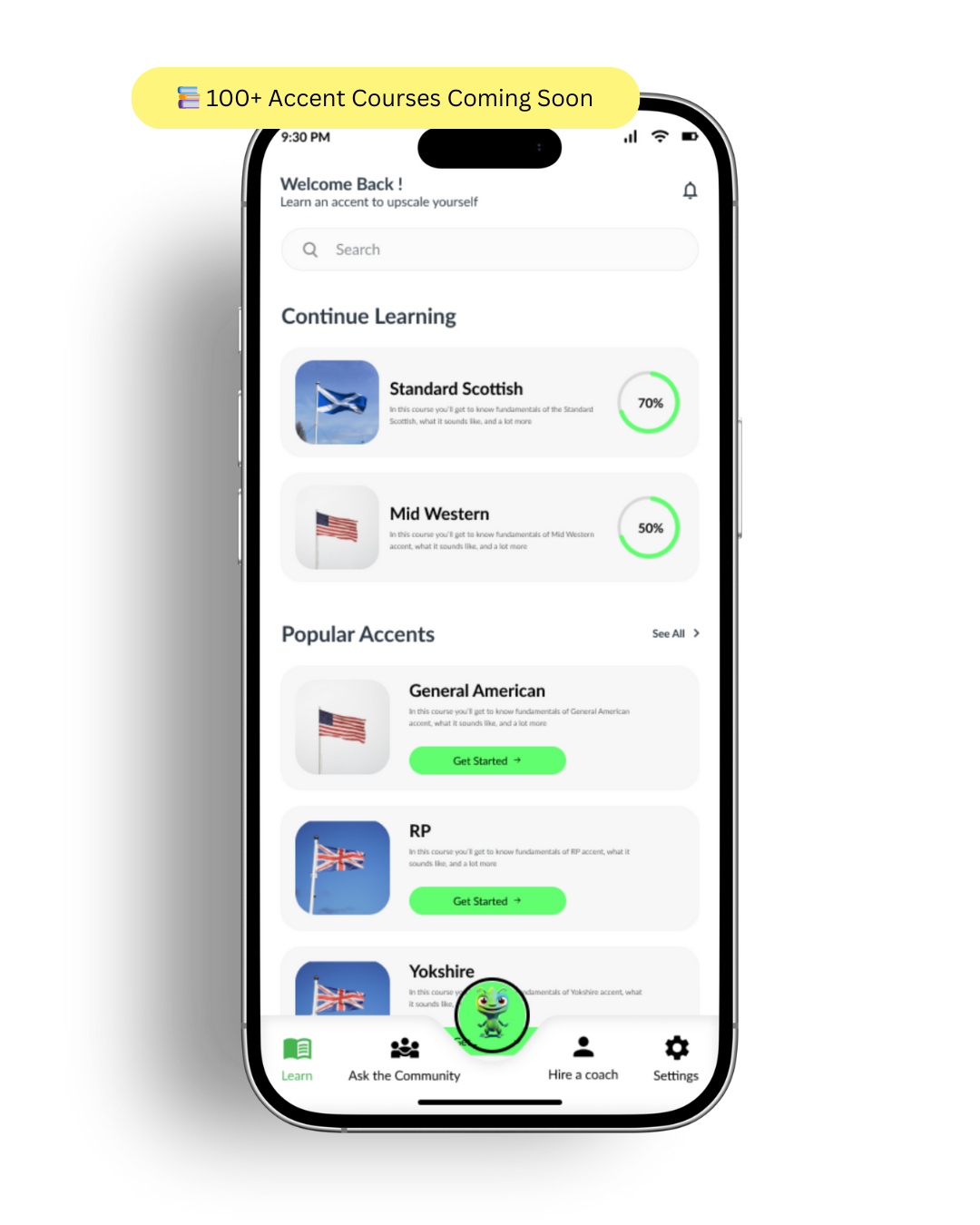 Accentify currently offers 6 courses, covering the most popular accents worldwide. We’re expanding to 100+ courses soon, including non-English accents. ✨