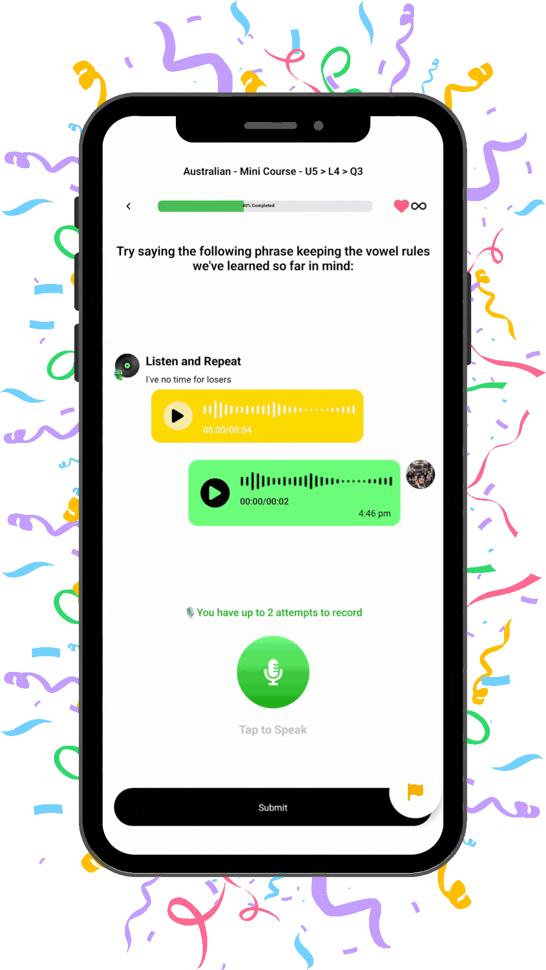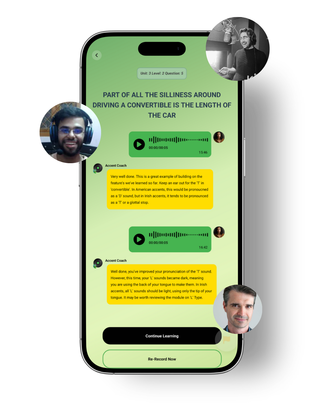 No experience is needed. Accentify guides you step by step, from basic sounds to full sentences, so you can start at your level and progress at your own pace. 🚀
